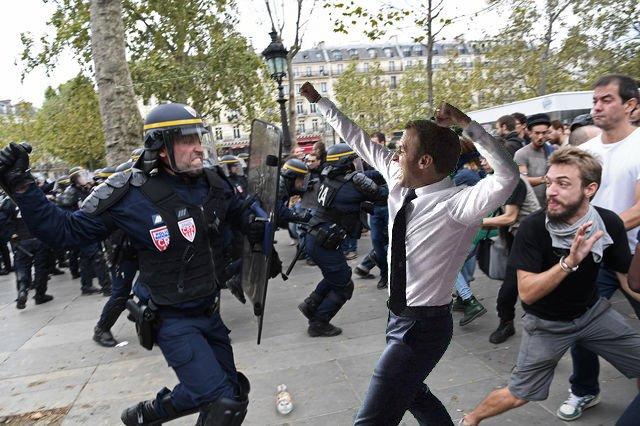 Fighting The Police Pose Ton Macron Know Your Meme