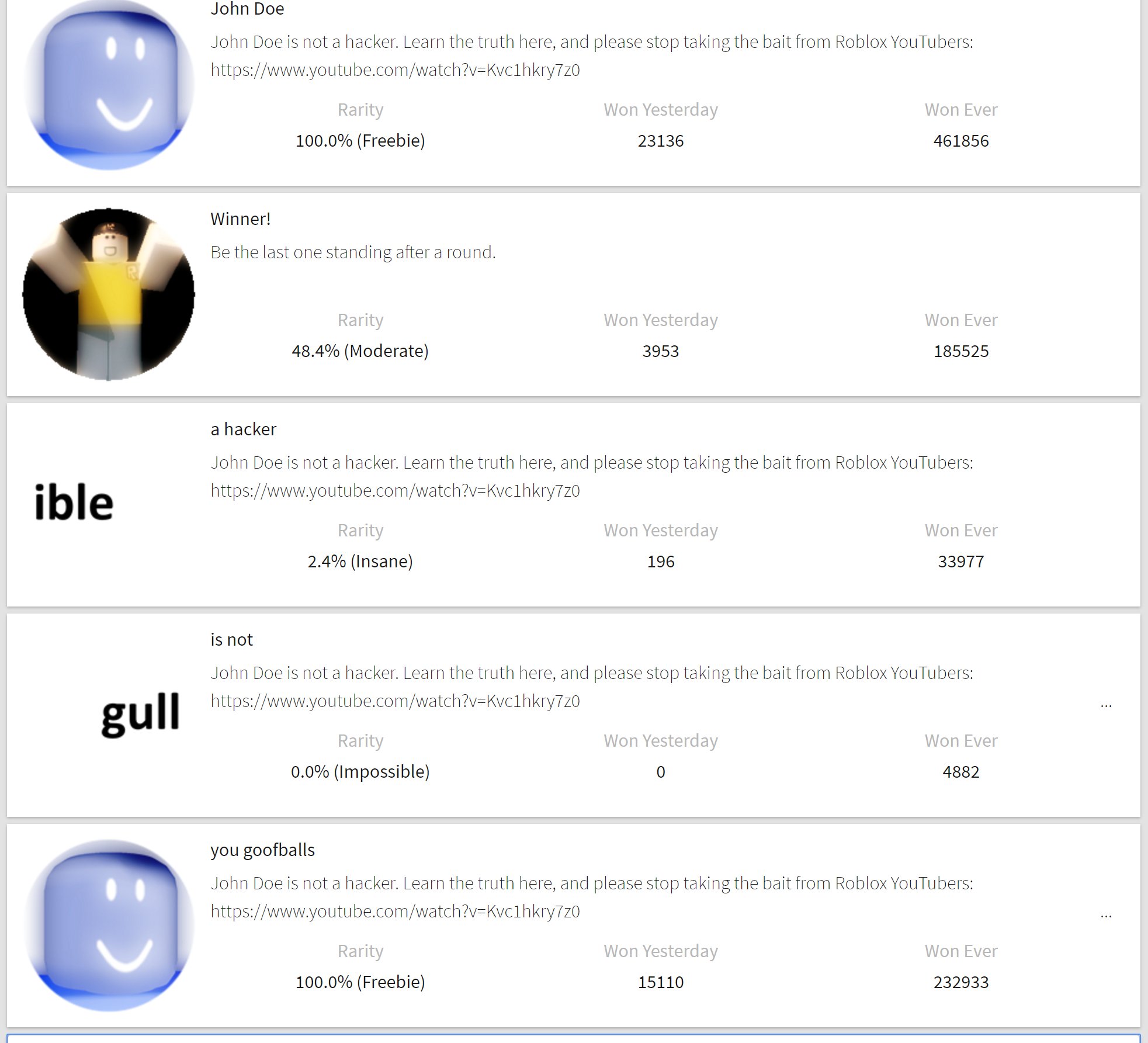 John Doe Badges John Doe Roblox